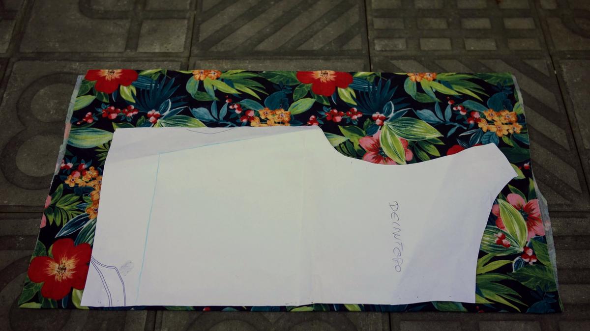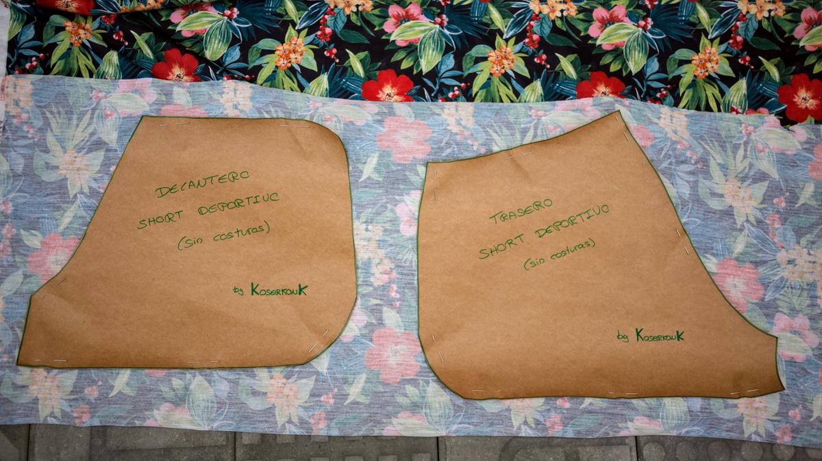 Una vez tenemos los patrones en papel los colocaremos sobre la tela doblada para obtener dos piezas de cada (delantero y trasero) en el caso de pantalón.Colocación del patrón sobre la tela antes de cortar El resultado seran, por tanto, dos piezas delanteras y dos piezas traseras que habremos cortado enfrentandolos derechos de las mismas: