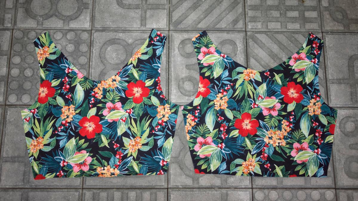 Dos de las piezas del pantalón short En el caso del top únicamente cortaremos una pieza delantera y una pieza trasera: