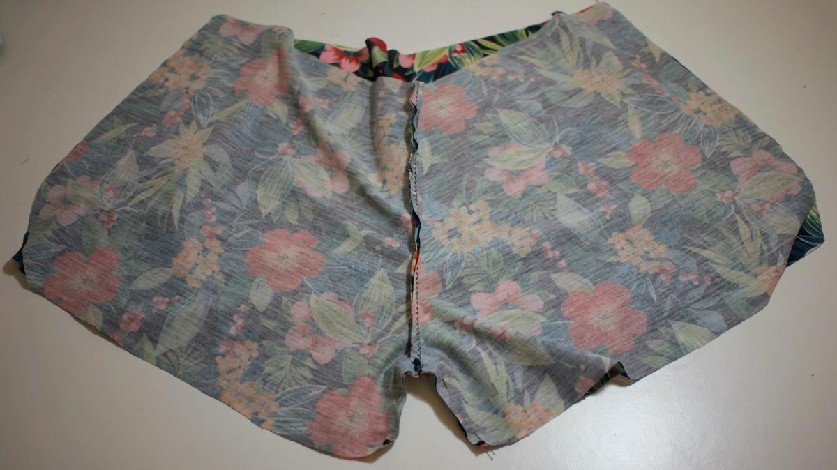 Resultado del short antes de las costuras laterales y de la entrepierna Una vez tengamos hecho este paso sólo nos quedará coser el dobladillo y la goma así que lo reservaremos y pasaremos a coser el top.
