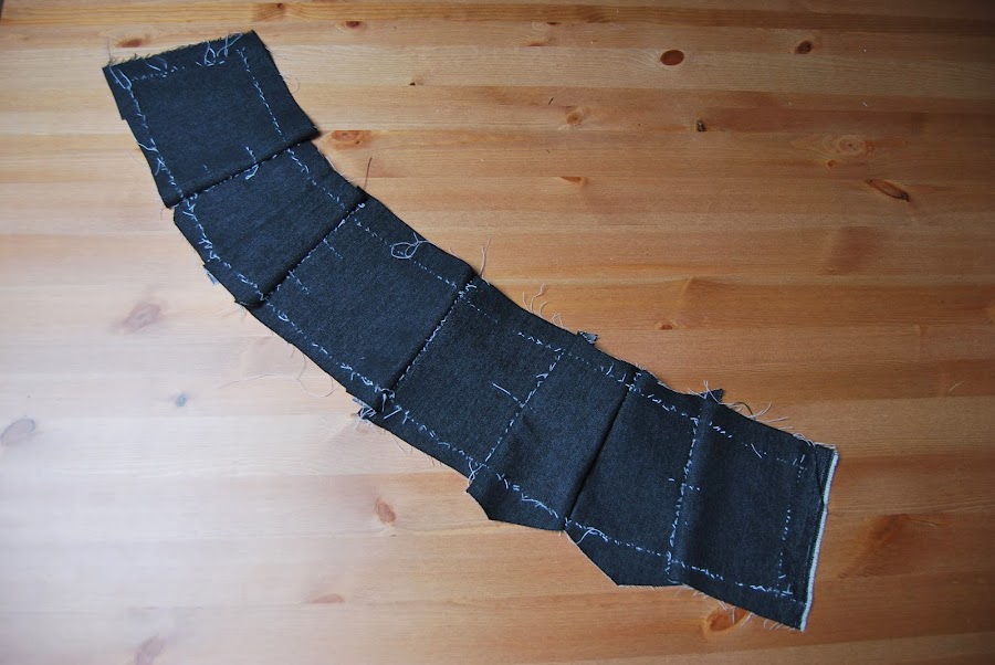 Unimos delantero y espalda. En el lateral izquierdo dejamos la apertura de la cremallera.