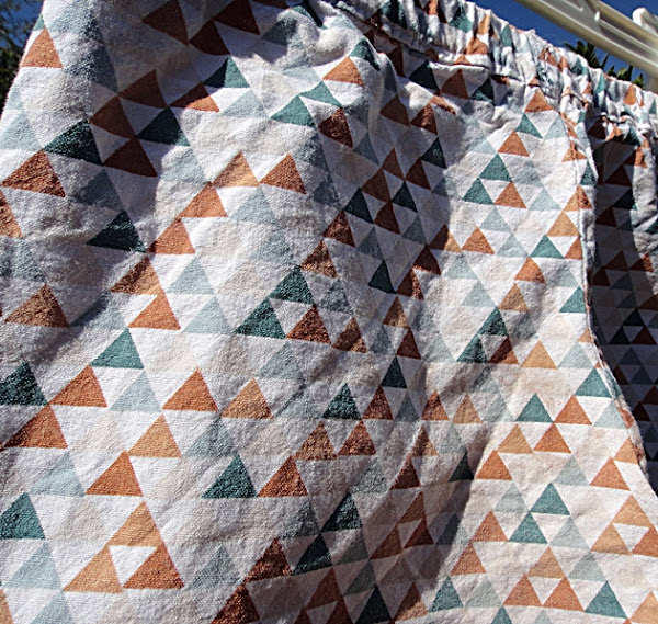 La gracia es poner un bies en un tono que contraste. La tela de triángulos es un algodón comprado en tienda local.