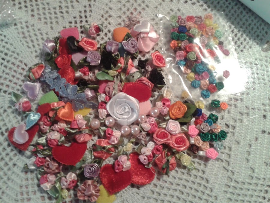 Las flores y perlas las he cosido. Las piedras como no tienen agujero las he fijado con silicona fría que tenia. Pero en este caso en mejor la caliente.