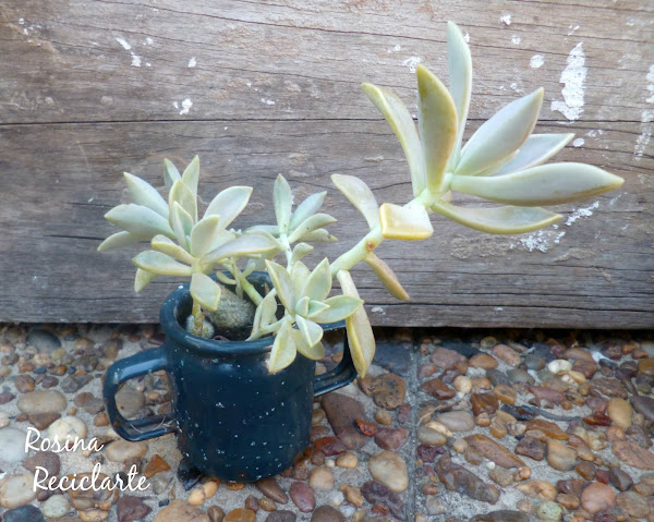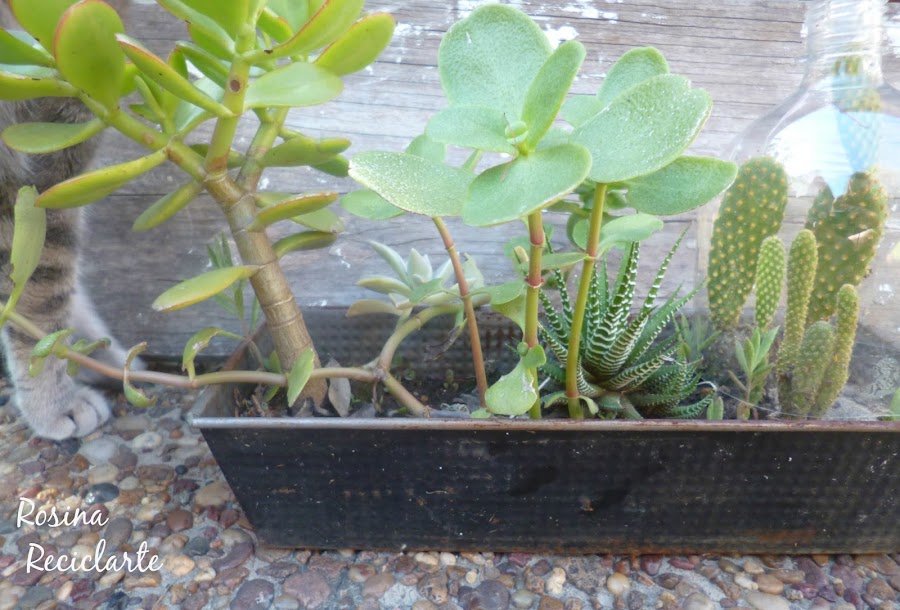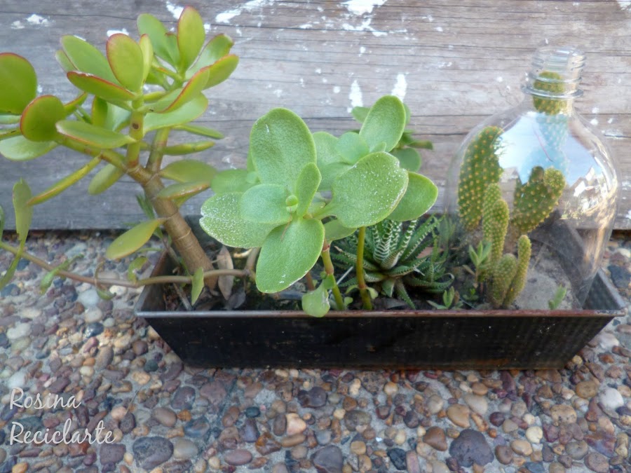Oxidada y rotosa,se transformó en un espléndido recipiente para alojar mis muditas de suculentas y cactus.