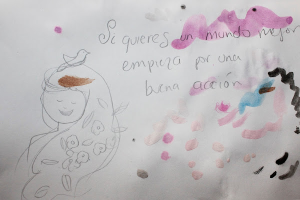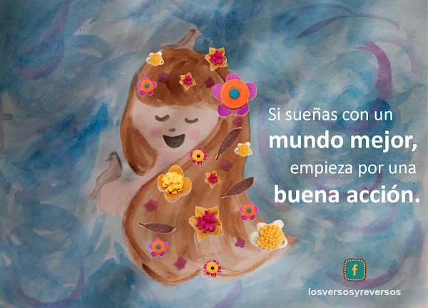 ¡Era lo que le faltaba! Finalmente estaba completa y pasé a trabajar en la computadora para ponerle las flores y la frase: "Si sueñas con un mundo mejor, empieza con una buena acción". La cual se me ocurrió durante la creación del boceto, aunque cambié "Si quieres" por "Si sueñas.."