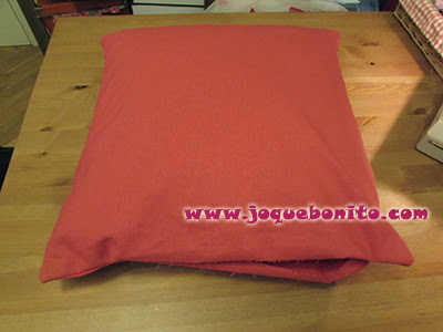Abres por un lado, le das la vuelta a la tela, metes el relleno y lo normal seria poner una cremallera en la abertura, pero como yo no soy normal.... jajaja.... lo he cosido "pá siempre". Asi me pasa, que cuando se manchen los tendré que meter enteritos en la lavadora. Con lo fácil que seria desenfundar y lavar solo la funda.... En fin, yo soy así y no tengo remedio...