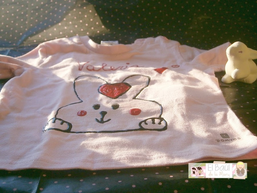 Le encantan los conejitos, así que decidimos pintarle una camiseta con un dulce animalito.