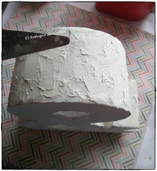 Por los laterales, aplico con la espátula estuco para conseguir relieves.