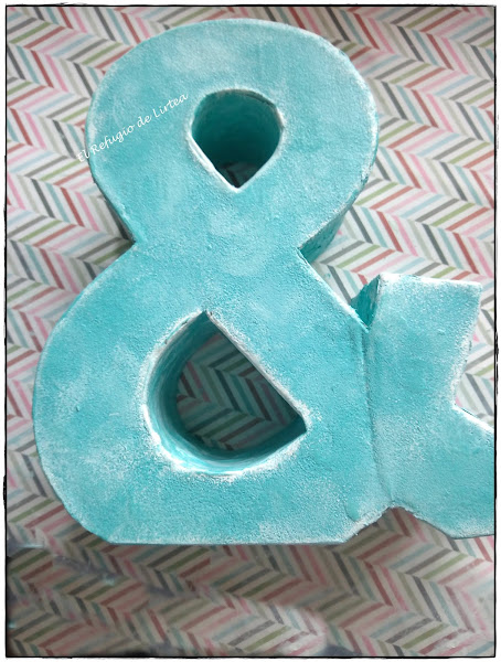 Este signo & de papel maché mide unos 17,5 cm, quería decorarlo de forma sencilla y tenía claro que sería en color azul.