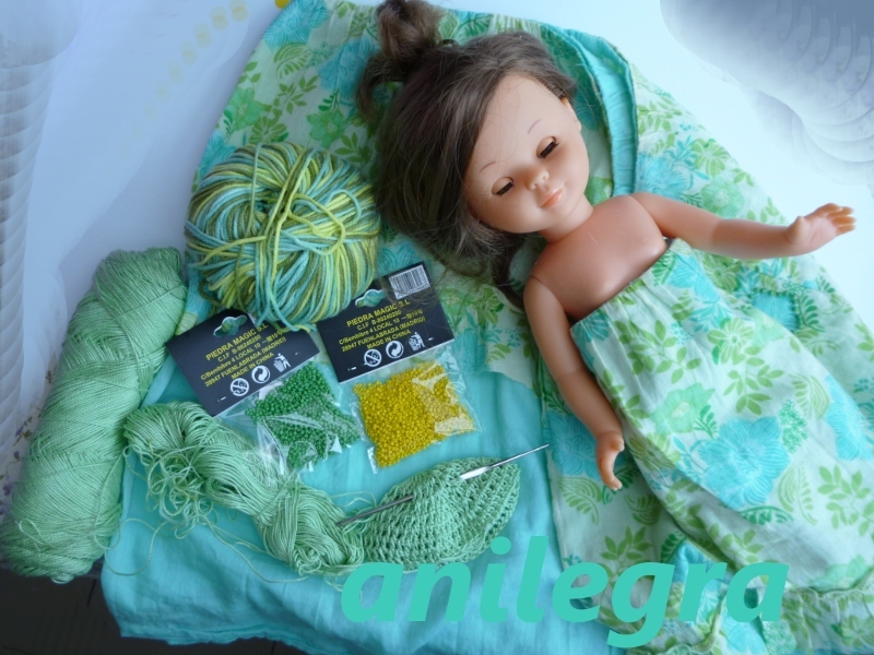 y unos hilos para hacerle el cuerpo de ganchillo , y un gorrito