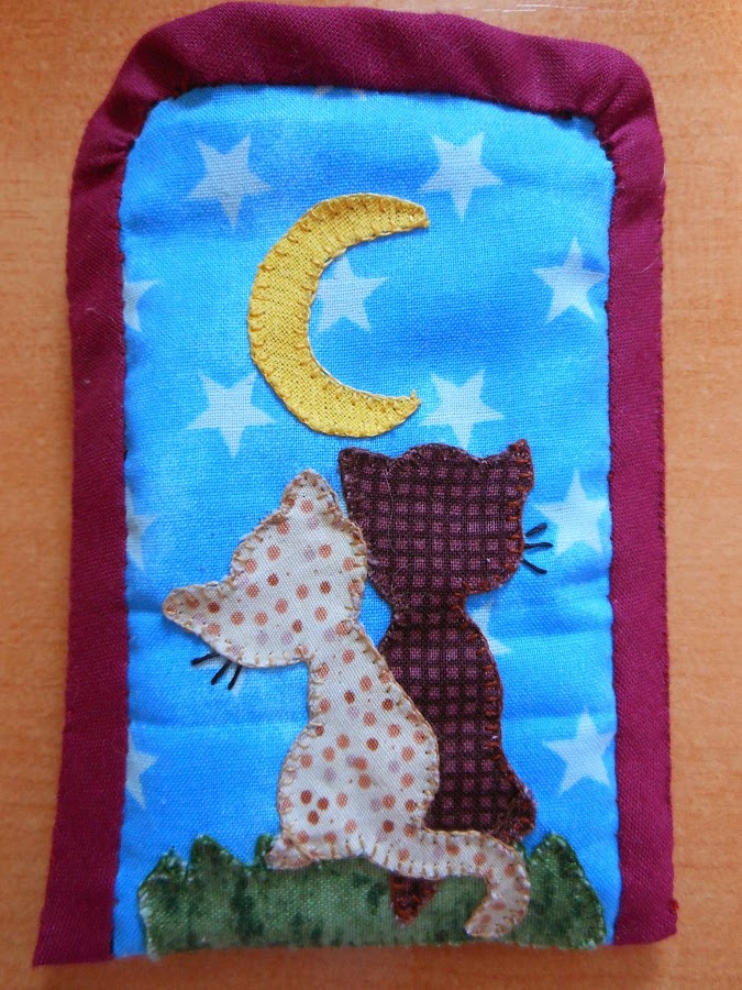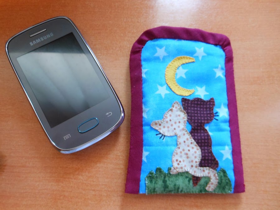 Hola queridas amigas,me resulta "de rubor" no publicar ninguna labor en tantos días, así que me he dicho ,aunque sea una "pequeñez" voy a hacerle foto a la fundita que le he hecho al nuevo móvil que me han regalado mis hijos. Y aquí está .,va de gatos, que es lo único que me dejan coser, los muy pillastres,al ser tan pequeño no se me pueden sentar encima jajajaja.