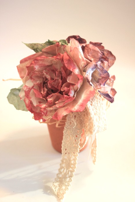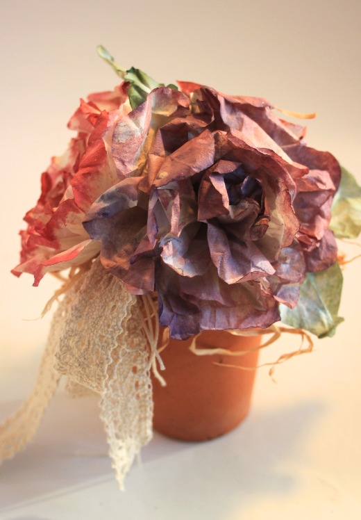 Sin querer cansarte con tanta rosa en papel de filtro de café aquí va otro arreglo con ellas! si, es que estaba tan feliz haciéndolas que no podía parar, hice un montón y en algo tenía que usarlas verdad?