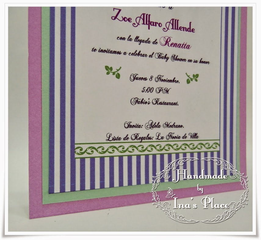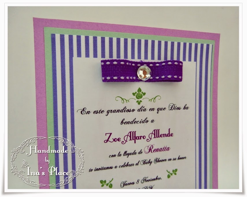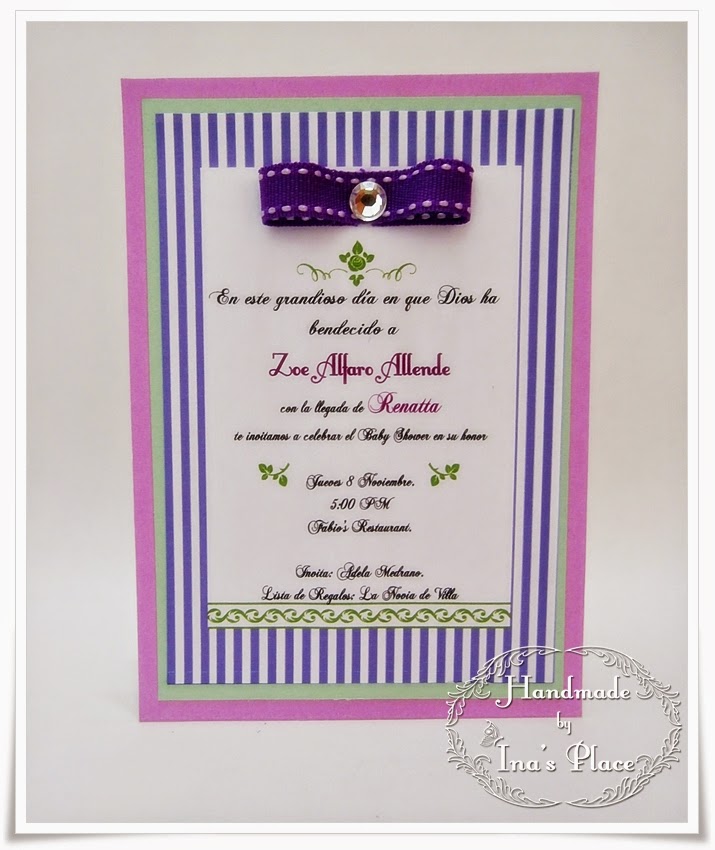 Pues bien,en esta invitación escogí esta paleta pq me pareció diferente el combinar el púrpura con un tono verde seco??pastel?? Escogí dos tonos entre el malva y lila y el resto los coloqué como acentos(el texto,el lazo,etc...)