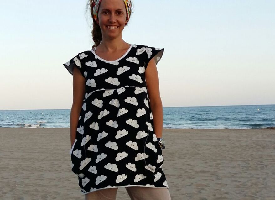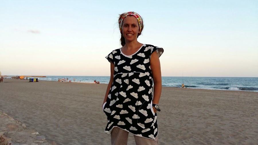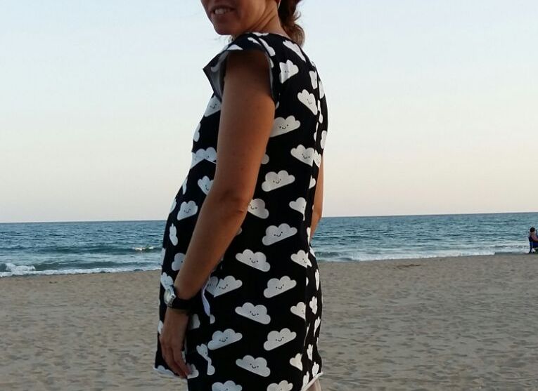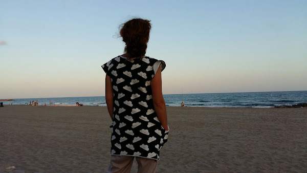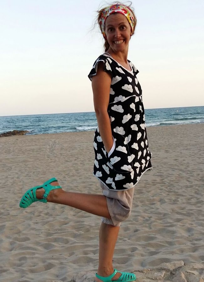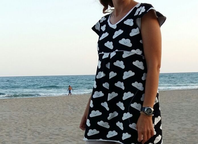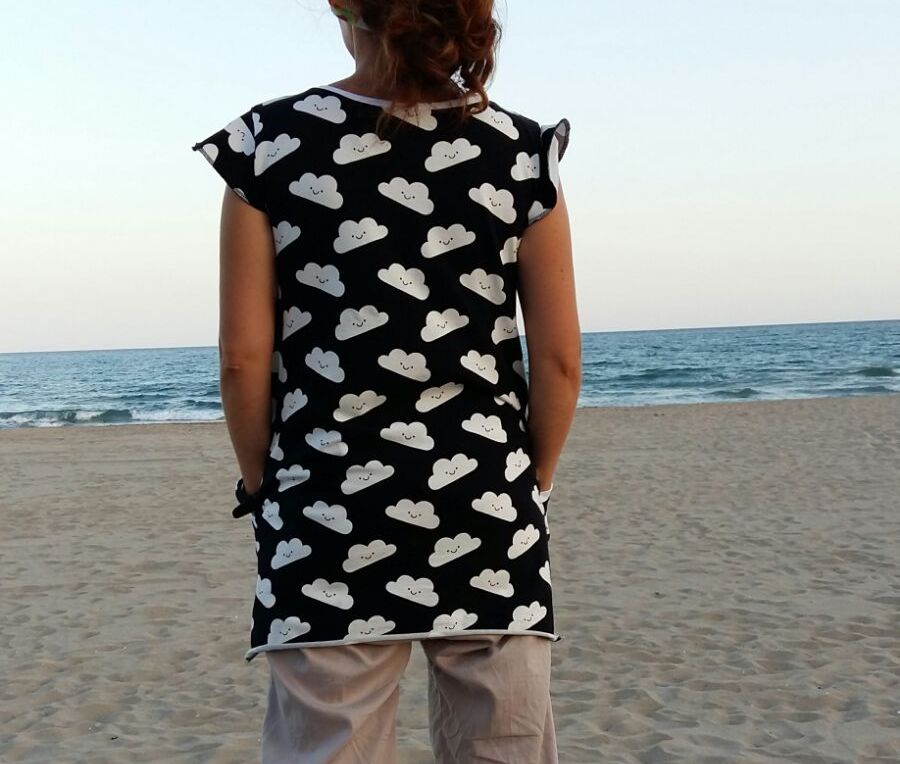 Un día las nubes tienen un significado especial, encuentras una tela llena de significado y lo conviertes en un peto/vestido veraniego... Y así nace la costura de hoy, el vestido G.