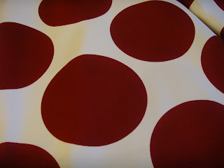 y esta tela preciosisisima de lunares grandes en burdeos también (a 7"20)