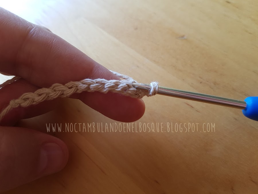 - 1 punto deslizado en cada cadeneta pero por la parte de atrás.