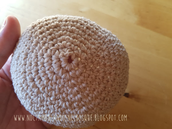 - 1 pb en cada punto de la vuelta anterior (sin aumentos). En esta vuelta cogeremos sólo la mitad del punto (la parte externa como se muestra en la foto).