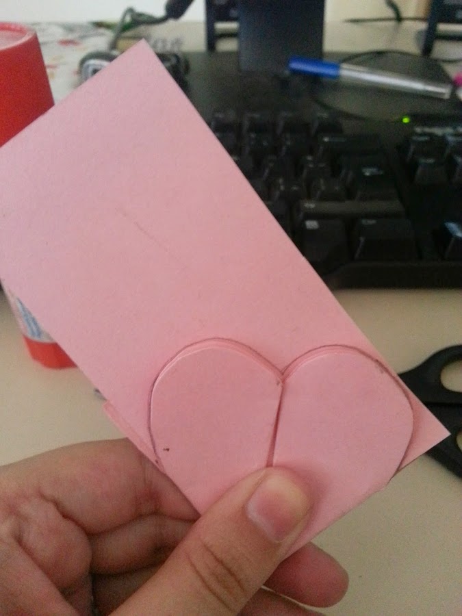 - 1 ficha de cartulina (de las que se usan para hacer resúmenes) tamaño mediano (en este caso de color rosa, pero si es para un amigo y quieren hacerlo de corazón pueden usar otro color)