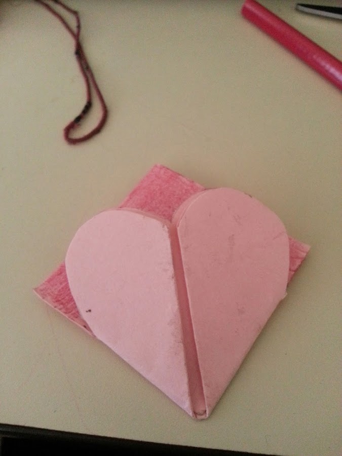 Y lo pegan a las dos mitades de corazón, de forma que ahora quedan unidas