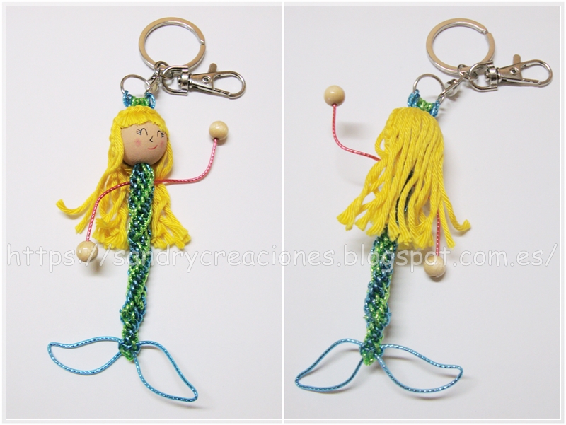 Y así nuestro llavero sirena en scoubidou quedó terminado: