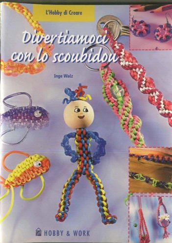 Hace unos meses mirando detenidamente los libros de la biblioteca pública encontramos un pequeño libro de scoubidou, nos hizo mucha ilusión porque habíamos hecho scoubidou cuando éramos pequeños y hacía mucho que no tocábamos este material ni esta técnica, además el libro enseñaba no solo a hacer pulseras sino que mostraba el paso a paso para realizar figuras, llaveros, etc.. con este material. El único problema era que estaba completamente en italiano, pero entre que no es muy difícil entenderlo y que siempre está el traductor de google para darnos una mano pues lo cogimos prestado para aprender mas cosas del scoubidou.
