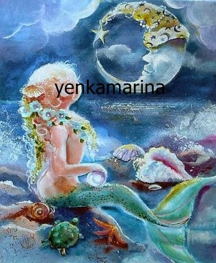 Precioso gráfico de una sirena mirando a la luna...