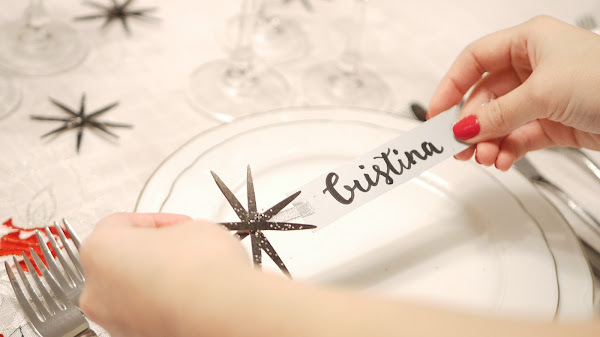 Otros años ya había preparado otros sittings de acuarelas y otros identificadores con ramitas de espigas secas. Y para la idea de este año solo hay que construir las estrellas (el paso a paso lo tienes más abajo en un vídeo), escribir los nombres de todos los comensales, colocarlo cada uno sobre su plato ¡y listo!