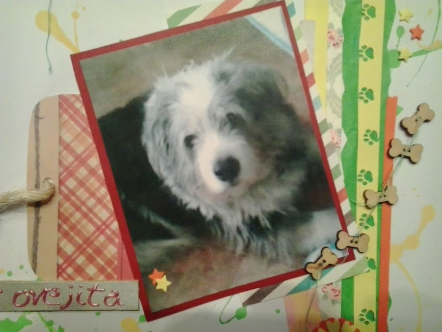 Y aquí os dejo mi interpretación, la foto es un poco borrosa, pero por aquel entonces...tener cámara en el móvil aún no se estilaba y tampoco es que me dedicara ha hacer muchas fotos a mi perro....aunque he aprendido la lección...y ahora tengo un book de todos los animales que me rodean!!