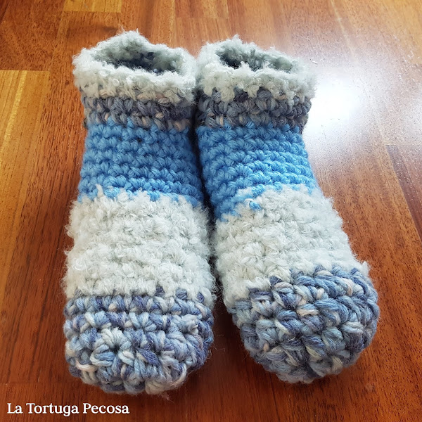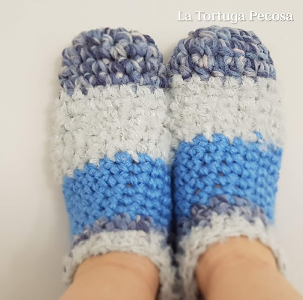 Aqui llega otro par de calcetines para el frio, ideales para estar en casa. Realizado en tones grises y azules, combaten de manera maravillosa el frío. En concreto estos calcetines estan realizados con 4 tipos de lanas diferentes, por lo que las texturas son variadas y se siente de diferente manera en los pies.