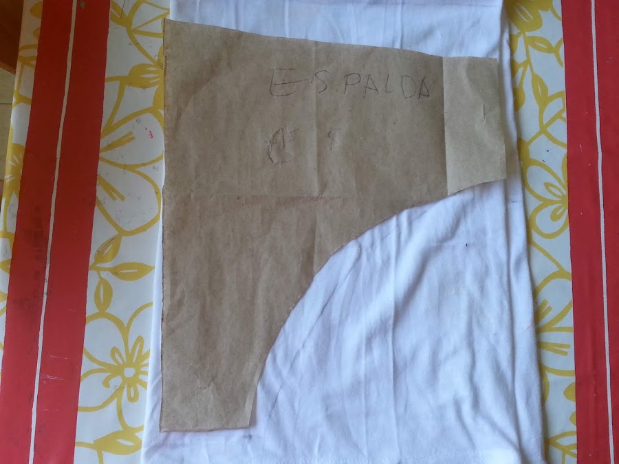 Cortamos en tela de algodón doble el patrón delantero con la pieza de refuerzo sin quitar.