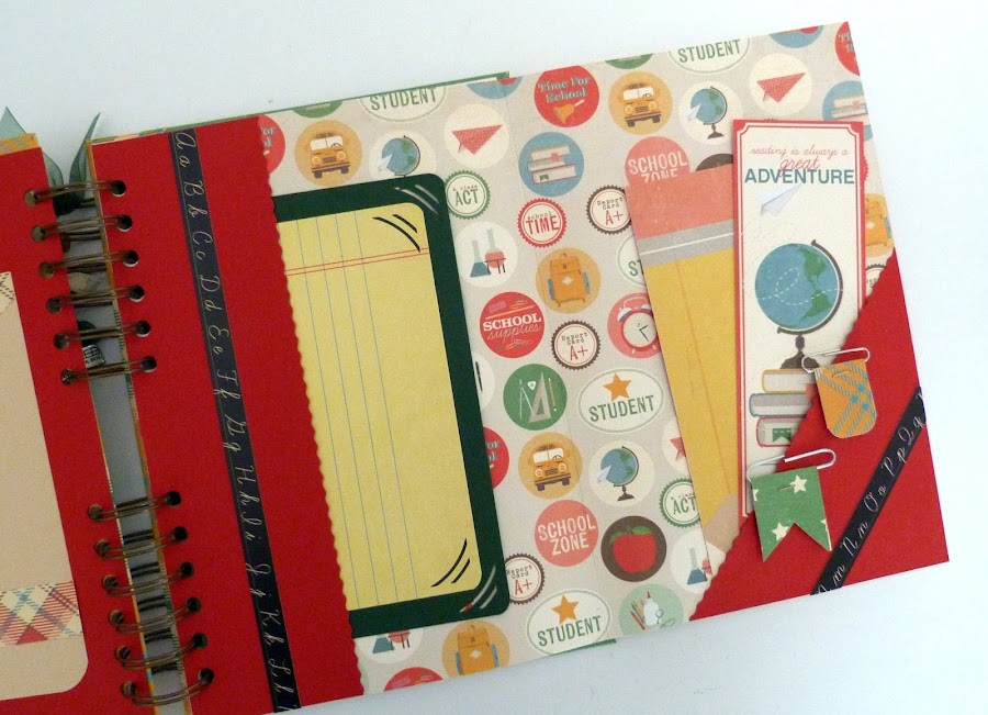 Es de Echo Park "Teacher´s Pet", está hecha desde cero partiendo de cartón y encuadernada con la Cinch.