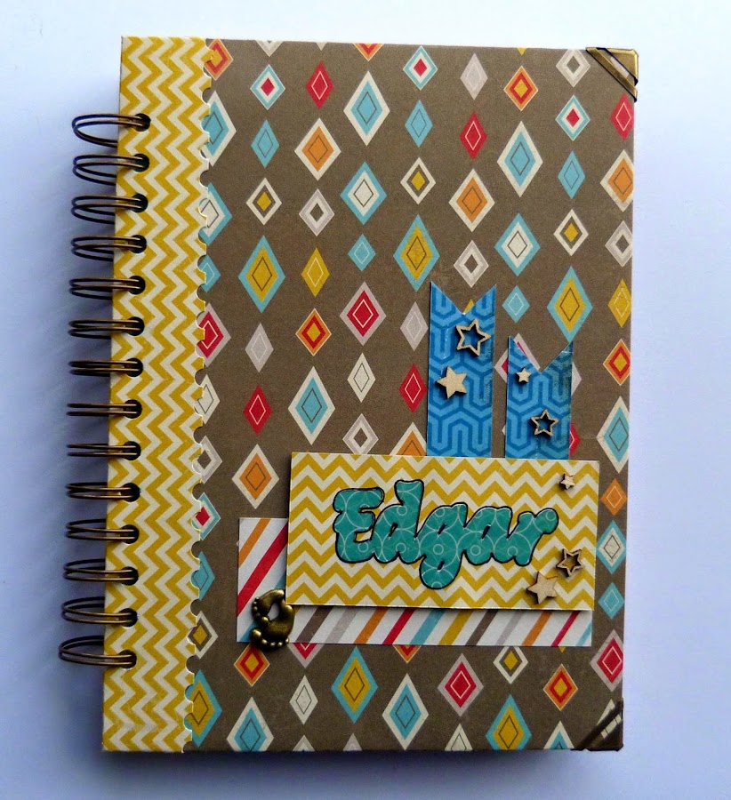 La mamá de Edgar me pidió una libreta bonita para ir anotando los progresos y anécdotas de Edgar y como me dió carta libre le hice una mezcla de librta y smash book.