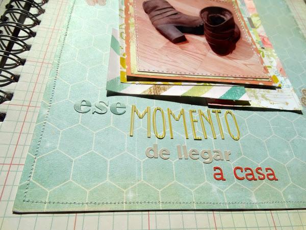 Para hacer las capas de papel debajo de la foto he usado restos de papel que tengo guardados, que siempre me digo "tengo que usar los restos!" pero nunca me acuerdo jajaja Así que esta vez he aprovechado esos trocitos que vamos guardando y, visto el resultado (he quedado muy satisfecha), voy a usarlos más veces para hacer capas y dar un poco de volumen a las páginas, aunque no mucho, que ya sabéis que no quiero que quede muy gordo este... :)