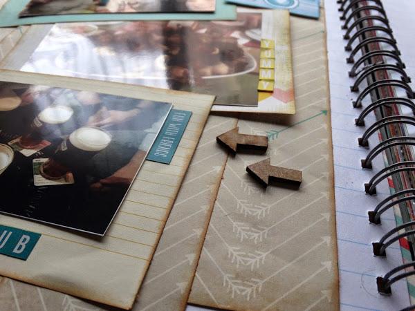 Como decoración he usado pegatinas, un par de flechas de madera y un par de cámaras de fotos, que he recortado de unos papeles y he pegado con adhesivo 3D, y recortes de papel.