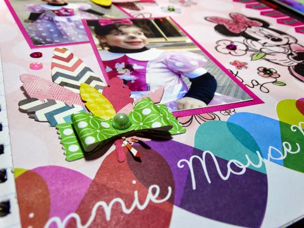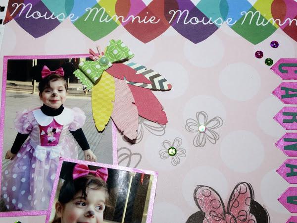 Como ya os he dicho, no es una página muy carnavalera, pero tenía esos papeles de la Minnie que, además, tenían el mismo tono que el disfraz de Inés y no pude resistirme a usarlos jejeje
