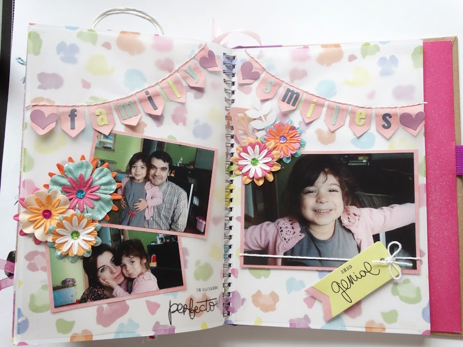 A las fotos, les hice un marco con el mismo papel que usé para hacer los banderines y para decorarlas unas flores y un par de sellos. Y bien, ¿que os parecen las páginas? A mi me encantan! Han quedado un poco pastelosas, pero tanto las fotos como la decoración me parecen de lo más acertado :) aunque claro, que voy a decir yo jajaja