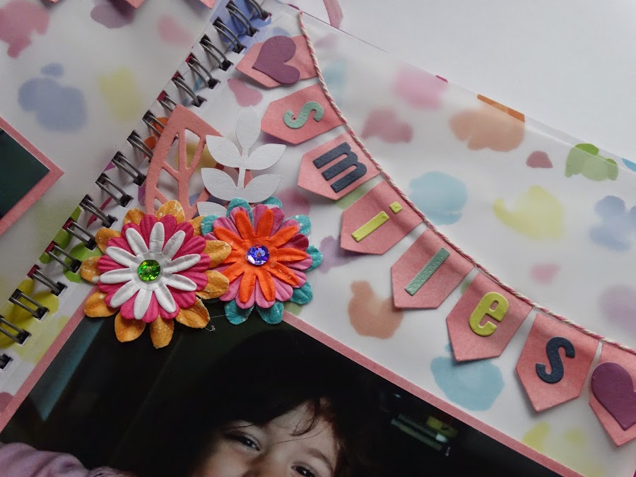 Para el título he hecho unos banderines en papel decorado en rosa pastel y luego, he troquelado las letras con la big shot.