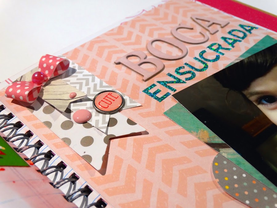 Para el título usé un abc de cartoncillo blanco y lo tinté con distress spun sugar y la palabra "ensucrada" es de un abc de pink paislee que fue verlo y enamorarme!