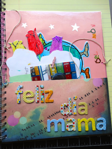 El día señalado de esta semana era el día de la madre. Inés hizo muchas cositas en el cole para regalarme en este día, así que como tocaba una página de bolsillo, me vino genial, porque guardé allí todas las cosas que me hizo.
