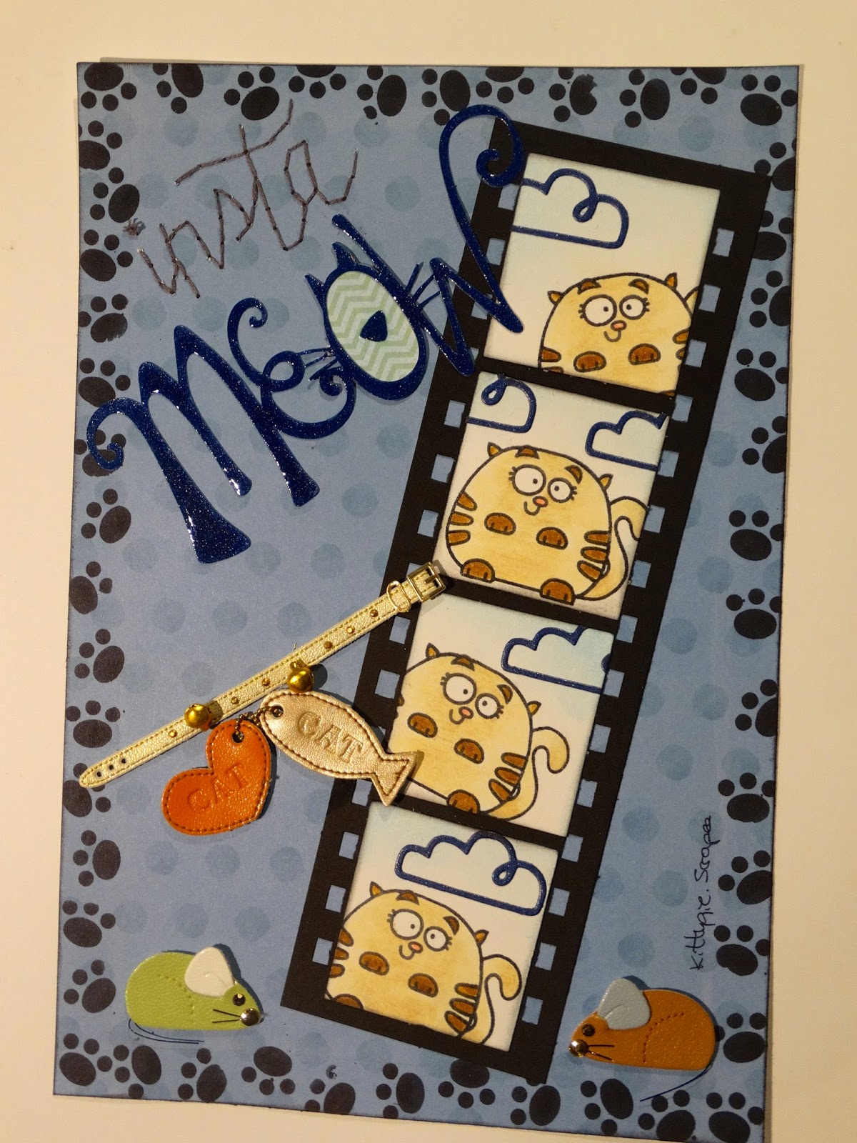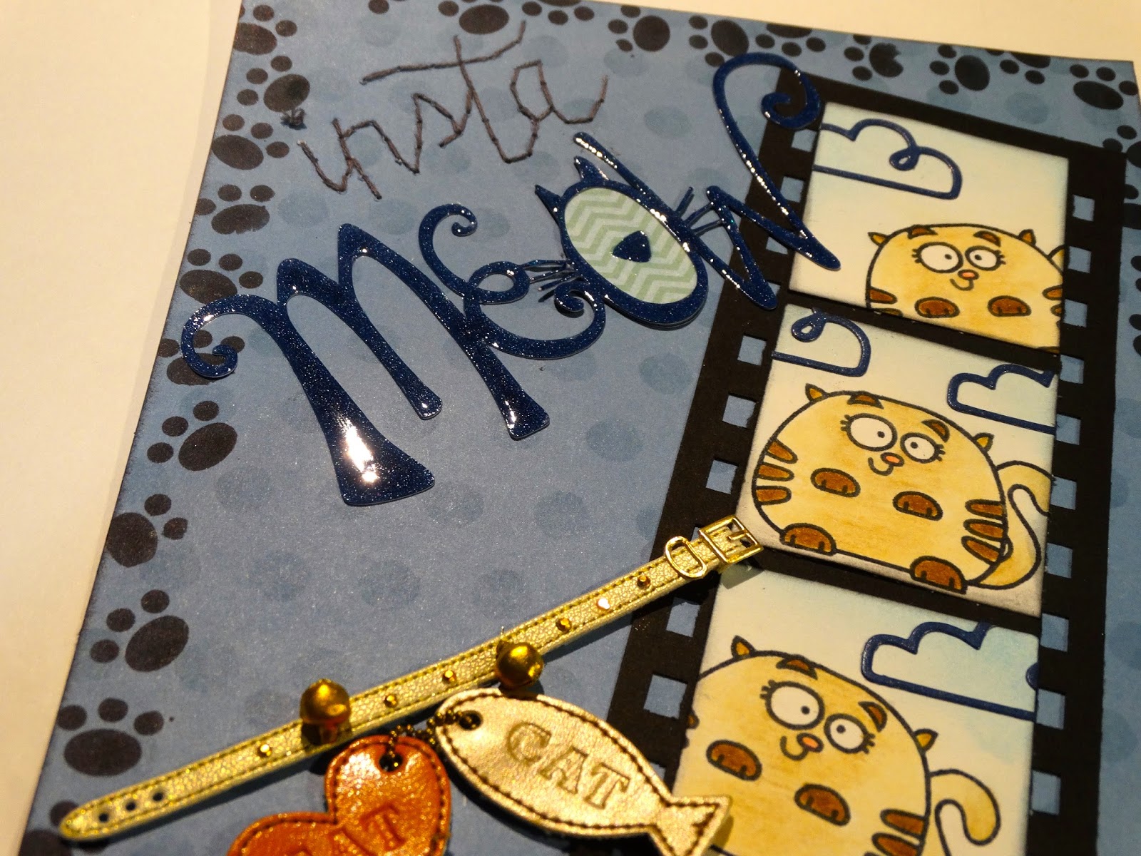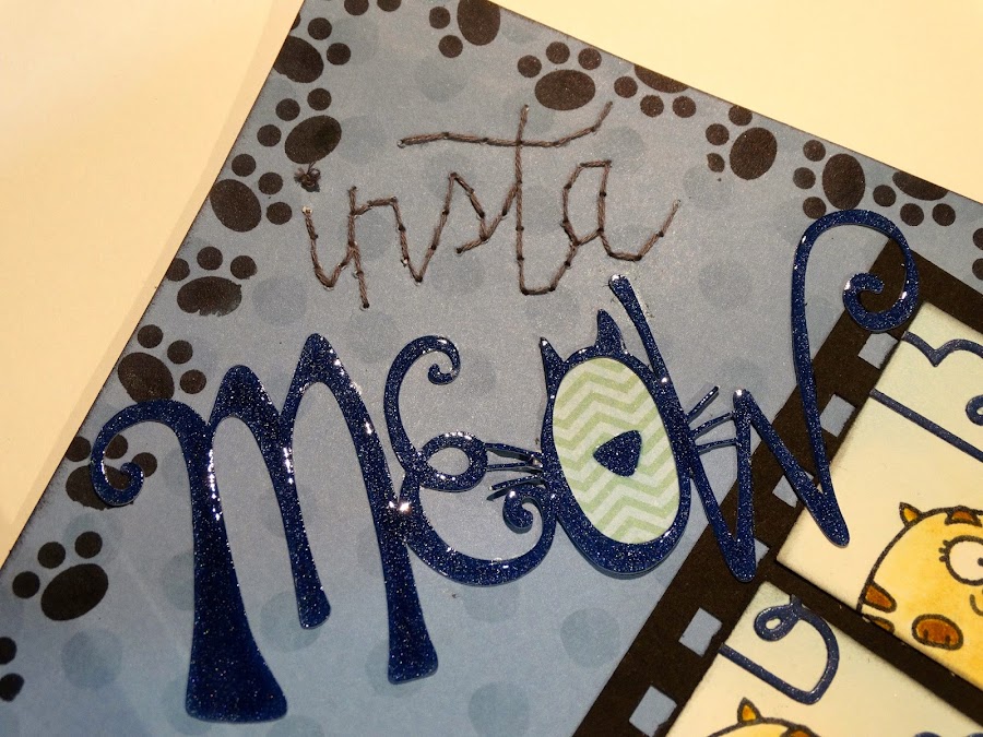 Para el título, cosí el "insta" a mano y el "Meaow" lo corté con la cameo y luego le di glossy por encima.