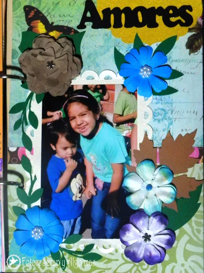 En esta página coloque una foto de mis hijos que me encanta!!!. La Titule "Amores"! y siiii, no hay Journal, en un Smash book no siempre tiene que ponerse un journal!, lo que si creo es que me falta la fecha jijiji!!! la memoria es frágil y después de unos 20 años dudo mucho que recuerde que fecha era! (Pendiente de hacer) jejejeje!.