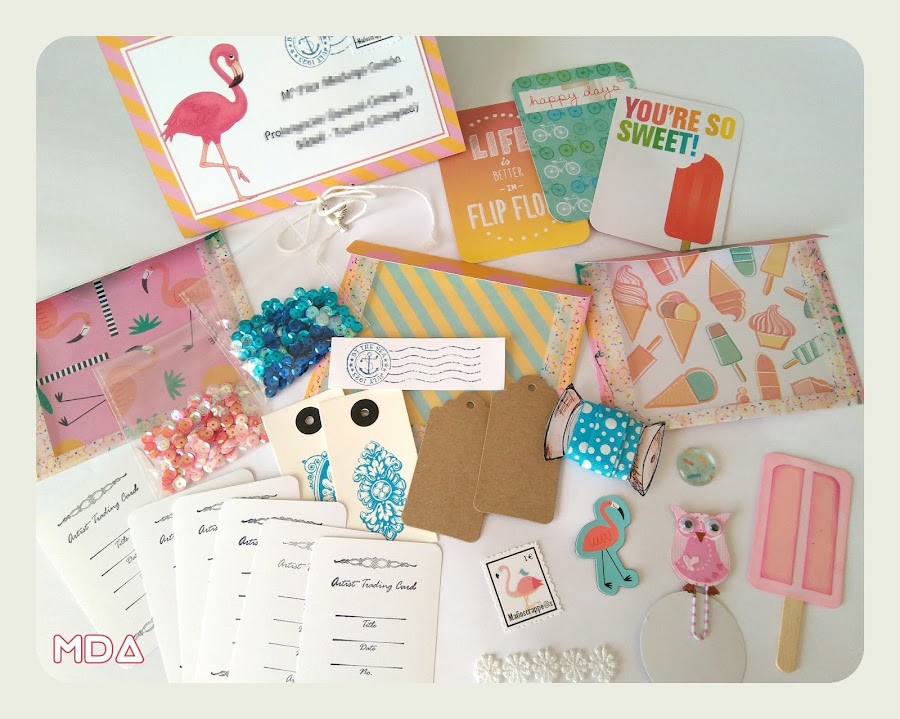 Elegí una colección muy veraniega de Tigger con unos colores preciosos y algunos diseños que imprimí para este proyecto, siempre pensado en los gustos de mi pen pal.