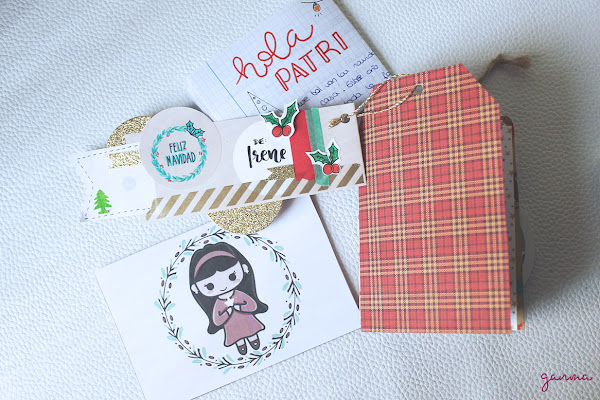 Este mes me tocaba responder al snailmail que me envió Patry el mes anterior y, como no, la temática propuesta es Navidad. Le preparé un librito lleno de bosilos con cositas Navideñas que puedes ver con más detalle en su blog, también le envié la postal que he escogido esta Navidad para felicitar las fiestas.
