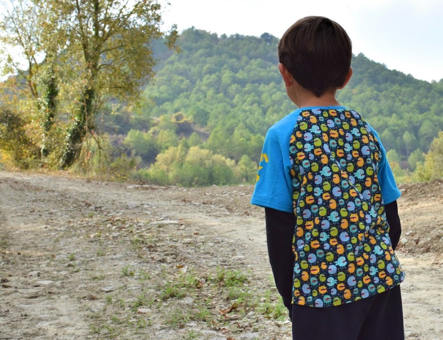 El patrón: Snow Peak, el número 27 de la Ottobre 4/2017; una camiseta mangas raglán con el bajo ligeramente recondeado. Como única modificación: acorté las mangas, que aún hacía mucho calor. Rematados los dobladillos con la recubridora.