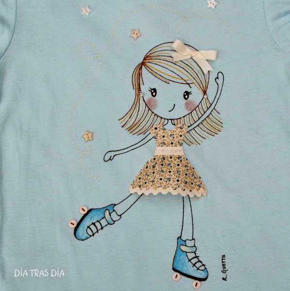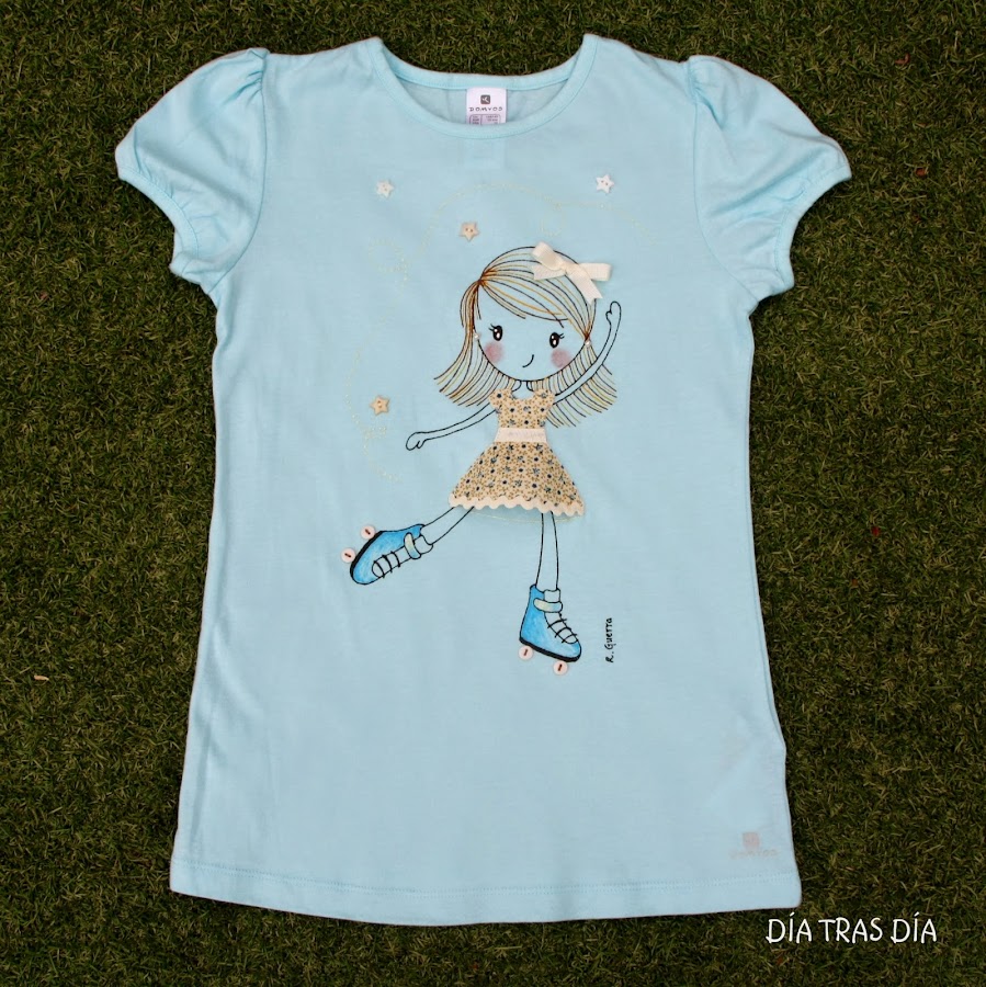 Al mismo tiempo, coincidió que invitaron a mi hijo Abel al cumple de su amiga Alba. Y como se que Alba se ha aficionado al patinaje, pensé en hacerle una camiseta de esta temática para regalarle.