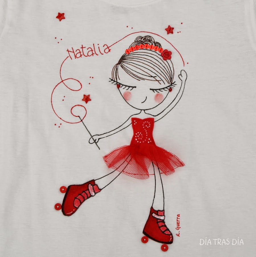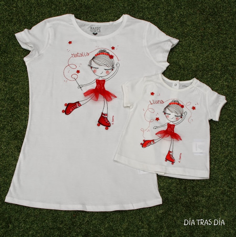 Quería que hiciera unas camisetas con el modelo Ro-ro patinadora con su falda de tutú, tanto para la mami como para la peque, una bebé que tiene ahora unos 3 meses.
