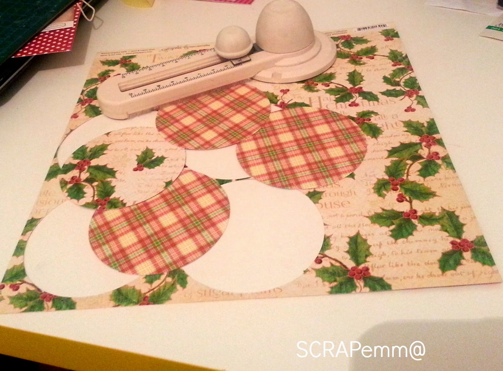 2. Cortaremos cuatro círculos idénticos por cada sobre que queramos hacer. Yo me he ayudado de la cortadora de círculos de Martha Stewart, pero podéis utilizar un troquel, la bigshot o cualquier ssuperficie redonda para ayudaros y luego recortarlos con tijeras. Cualquier opción es buena.