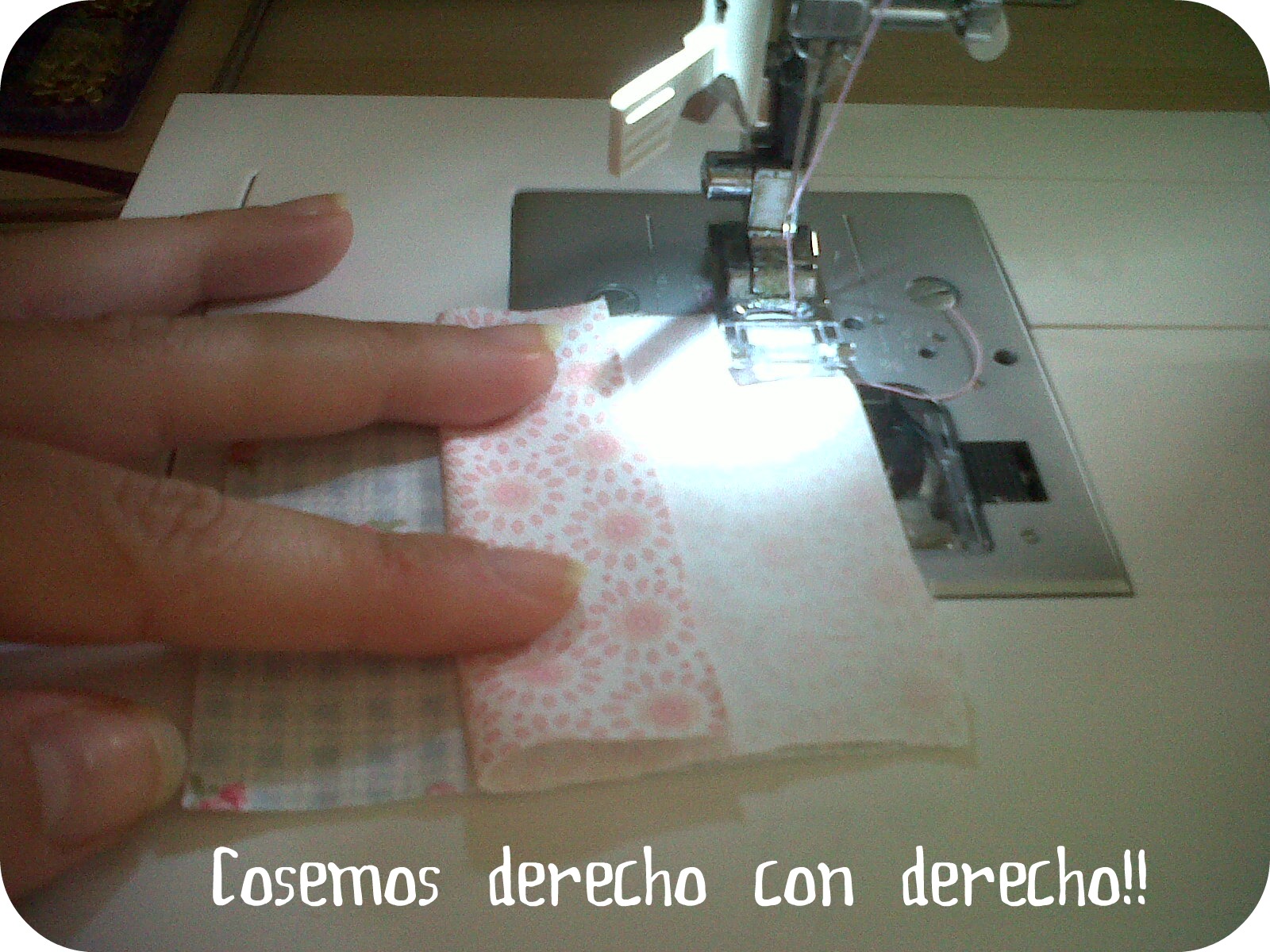 2) Una vez recortados los cuadrados de tela, los cosemos enfrentando derecho con derecho y alternando las telas.
