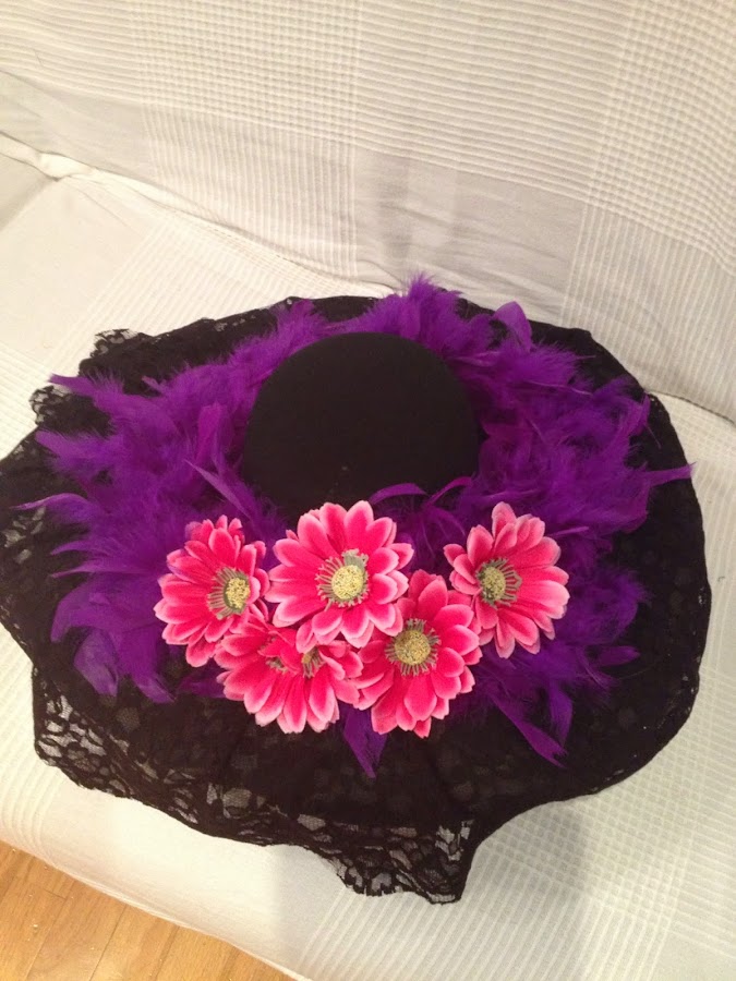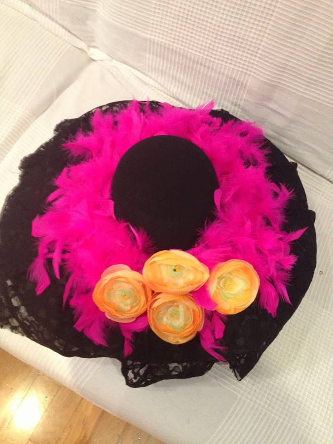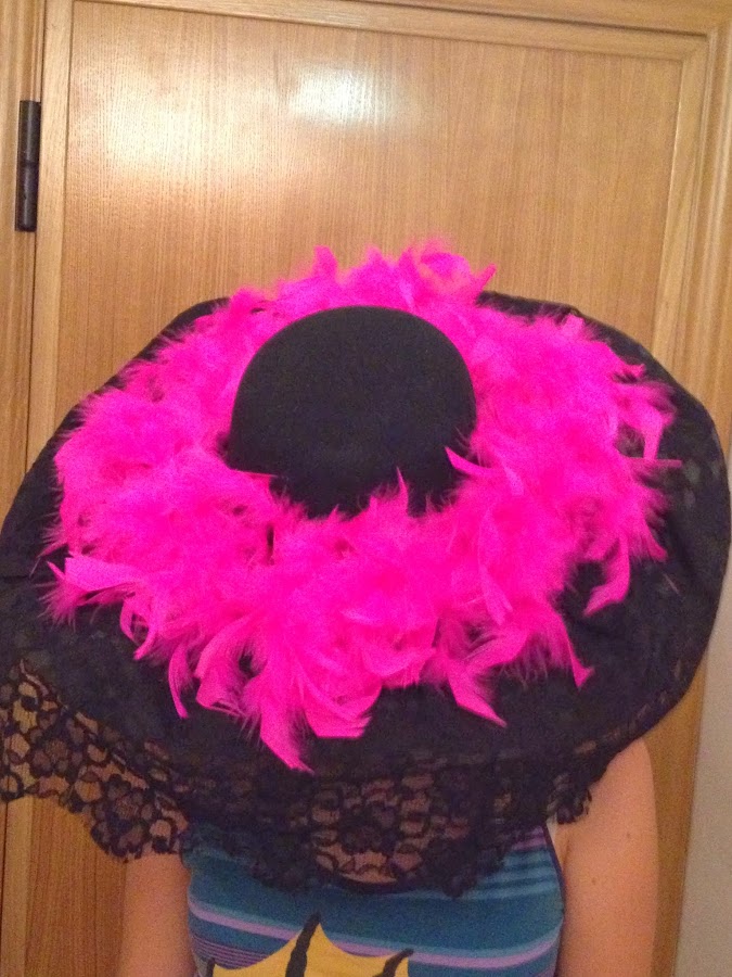 Ahora tienes que poner la boa de plumas, igualmente pégala con la pistola de silicona y añade las flores a tu gusto, también se unen con el pegamento caliente.