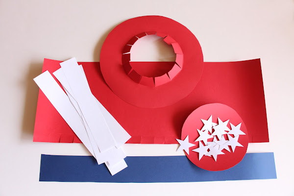 Pegamos la tira azul con estrellas y ya tenemos el sombrero acabado.