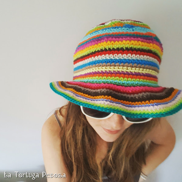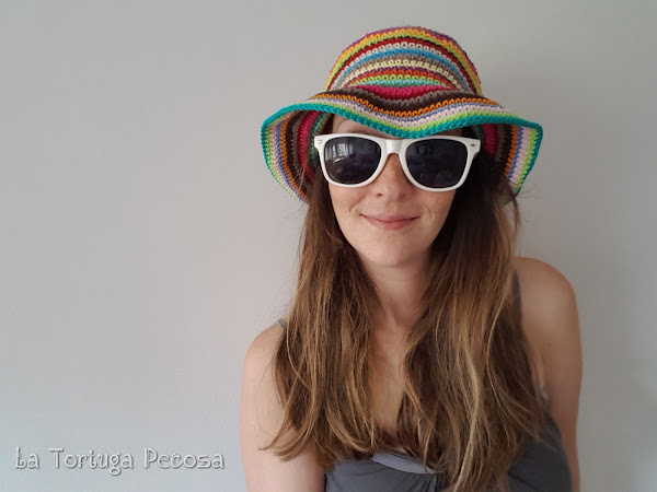 El caso es que estos dias estan siendo muy calurosos, el sol pega a tope y como tenía unos hilillos sobrantes de otros trabajos de crochet, pues decidí hacerme un gorrito multicolor de hilos de algodón que no da exceso de calor.